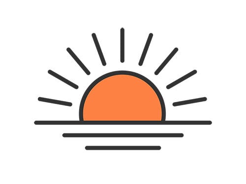 海からの初日の出のアイコン(線画カラー)のイラスト
