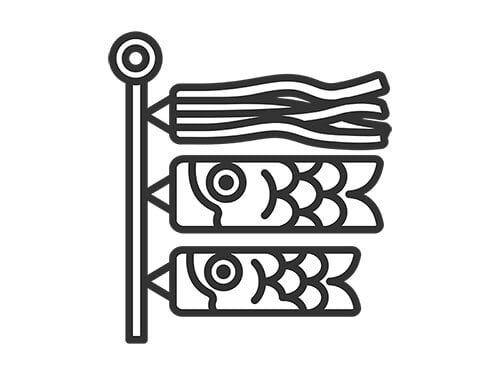 鯉のぼり(吹き流し・真鯉・緋鯉)のアイコン(線画)のイラスト