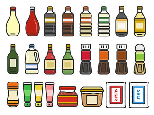 いろいろな、調味料のアイコン(線画カラー)のイラストセット | イラストセンター有料素材販売