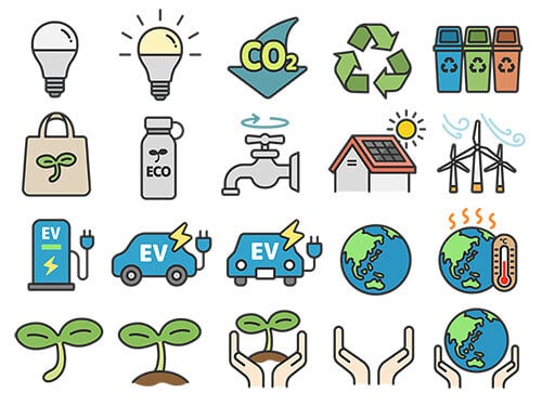エコ・環境保護・SDGsのアイコン(線画カラー)のイラストセット | イラストセンター有料素材販売
