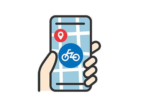 自転車での配送状況確認のアイコン(線画カラー)のイラスト | イラストセンター有料素材販売