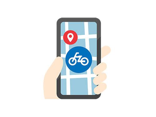 自転車での配送状況確認のアイコンのイラスト | イラストセンター有料素材販売