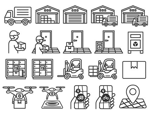 いろいろな、物流関連のアイコン(線画)のイラストセット | イラストセンター有料素材販売
