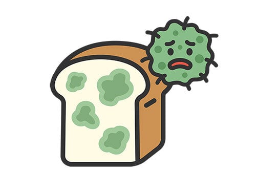 カビの生えた、食パンとキャラクターのアイコン(線画カラー)のイラスト | イラストセンター有料素材販売