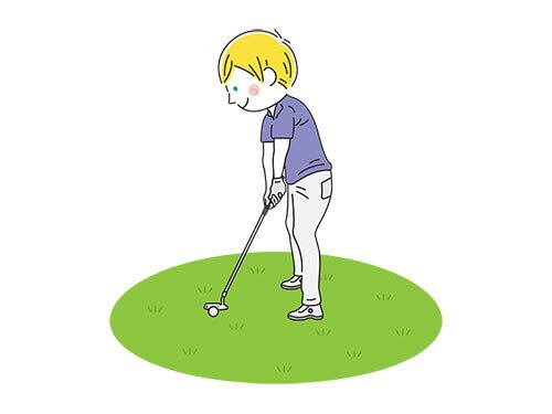 ゴルフのパッティングをする、白人男性のイラスト(eps+pngデータセット)