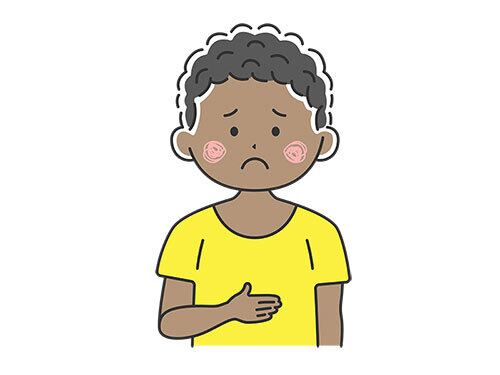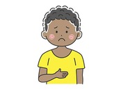 腹痛で、お腹を押さえる黒人男性のイラスト(eps+pngデータセット)
