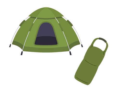 アウトドア用のテントと収納袋のイラスト(eps+pngデータセット)