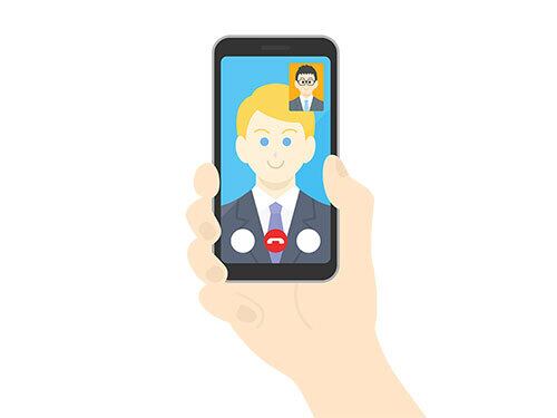 スマートフォンを持って、テレビ電話する、白人ビジネスマンのイラスト(eps+pngデータセット)