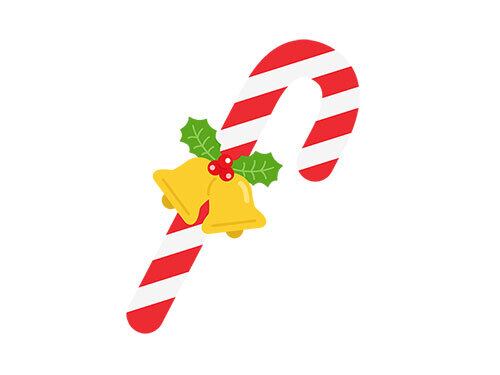ベルの付いた、クリスマスのステッキキャンディーのイラスト(eps+pngデータセット)