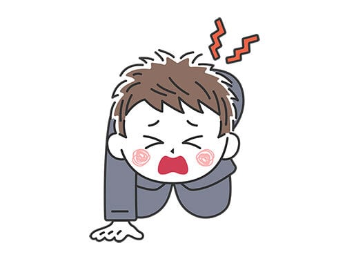 腰痛で立ち上がれない、若いビジネスマンのイラスト