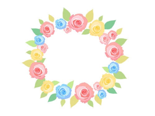 カラフルな、薔薇の花の円形フレームのイラスト