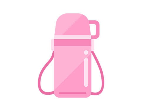 コップ付きの、ピンク色の水筒のイラスト
