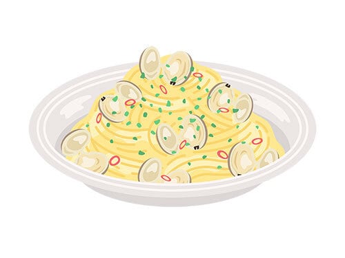 皿に盛り付けられた、ボンゴレパスタのイラスト