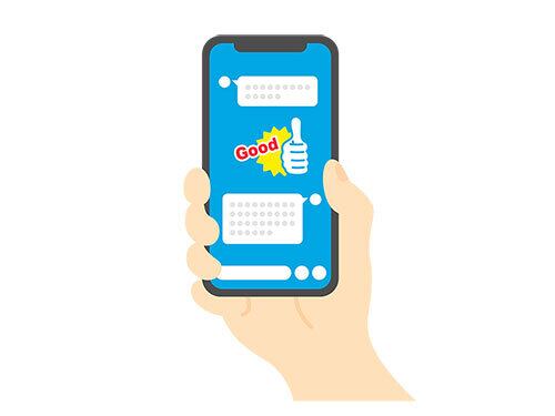 スマートフォンで、メッセンジャーアプリを利用する人のイラスト