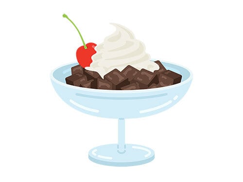 皿に盛り付けられた、角切りコーヒーゼリーのイラスト