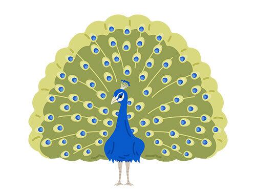 羽を広げた、孔雀のイラスト