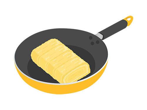 フライパンで調理する、卵焼きのイラスト