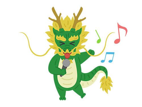 カラオケで熱唱する、龍のキャラクターのイラスト