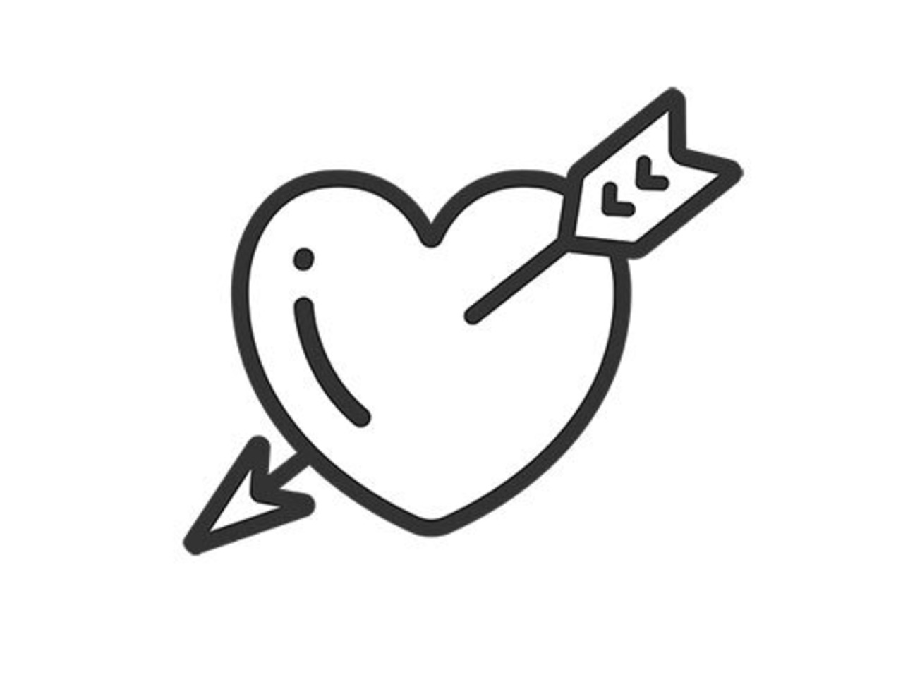 矢が刺さった、ハートのアイコン(線画)のイラスト
