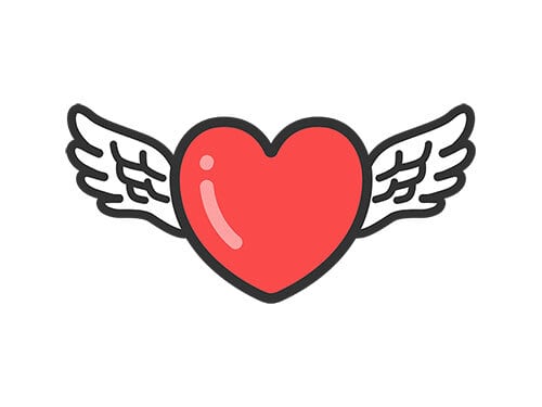 翼のついた、ハートのアイコン(線画カラー)のイラスト