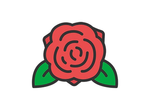 赤い薔薇の花のアイコン(線画カラー)のイラスト
