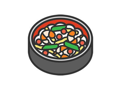 ひな祭りの、ちらし寿司のアイコン(線画カラー)のイラスト