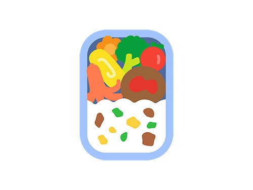 水色の弁当箱に入った、お弁当のアイコンのイラスト