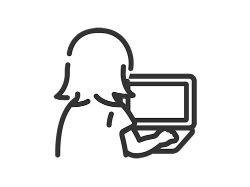 ノートパソコンを使う、後ろ姿の女性のアイコン(線画)のイラスト
