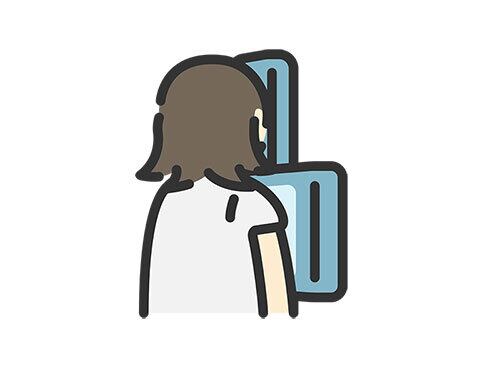 胸部x線検査を受ける、女性のアイコン(線画カラー)のイラスト