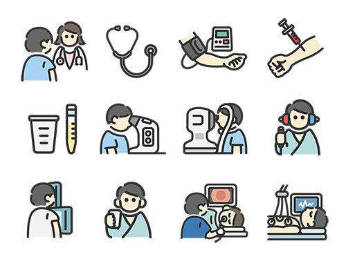 健康診断のメニューのアイコン(線画カラー)のイラストセット