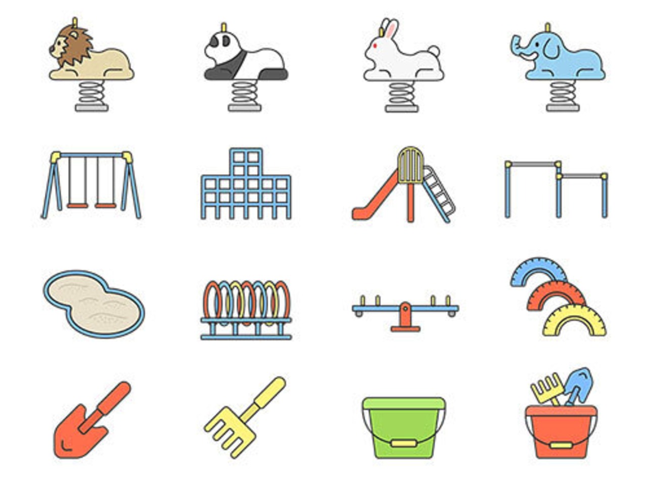 いろいろな、公園の遊具のアイコン(線画カラー)のイラストセット