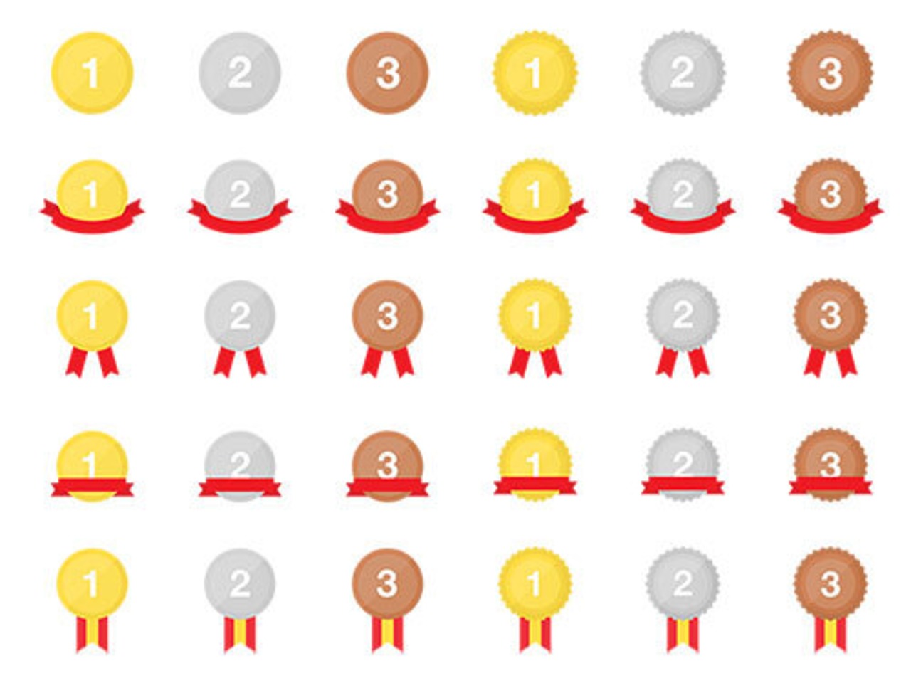 金銀銅の、いろいろな種類の、数字付きメダルのイラストセット